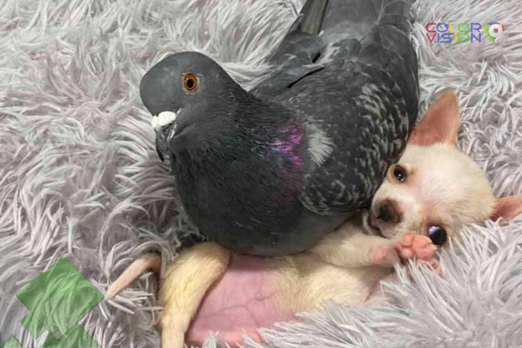 Que opinas de la peculiar relación de buena amistad entre un chihuahua y una paloma.