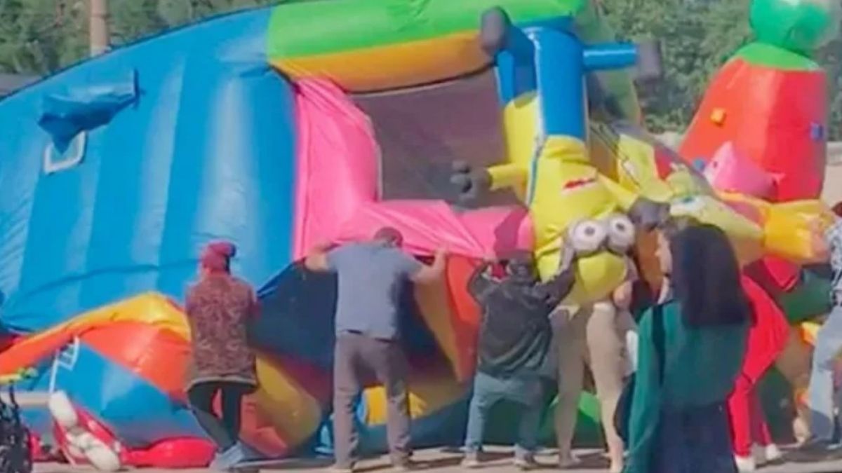 Según la investigación preliminar, una fuerte racha de viento levantó por los aires al castillo hinchable, desde donde los niños cayeron desde una altura de unos diez metros alrededor de las 10 de la mañana (23.00 GMT del miércoles).