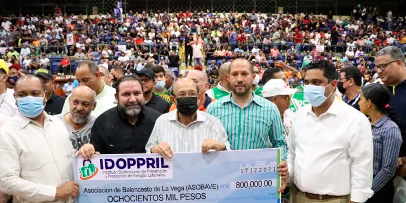 LA VEGA.- El director ejecutivo del Instituto Dominicano de Prevención y Protección de Riesgos Laborales (IDOPPRIL), doctor Fausto López Solís, entregó un aporte de 800 mil pesos a la Asociación de Baloncesto de La Vega (ASOBAVE), como un aporte para el desarrollo exitoso del XXVII Torneo de Baloncesto Superior de esta provincia, que este 2021 ha sido dedicado al Presidente Luis Abinader.