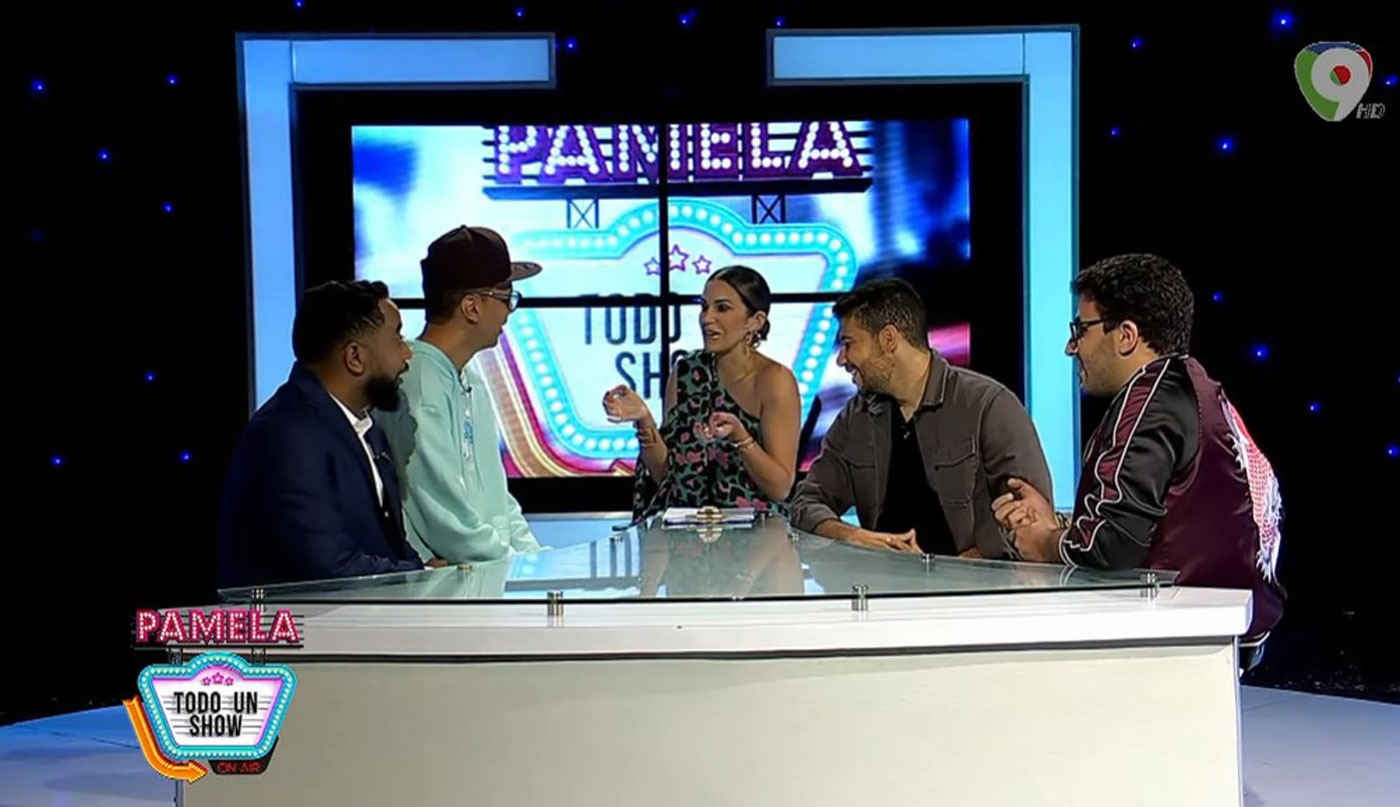 En pamela todo un show, recibe la visita del equipo del programa Open Mic, Ariel Santana, Orlando Toribio (Pio), Estarlin Ramírez, Elías Serulle y Miguel de la Cruz.