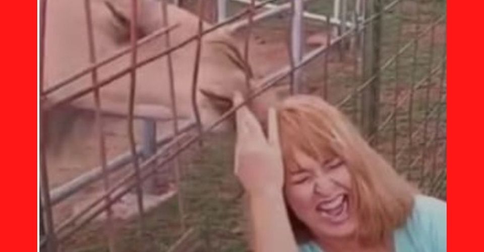 Aunque para muchos representó un peligro, la mujer soltó una carcajada, pues no esperaba la reacción del animal mientras intentaba alimentarse.