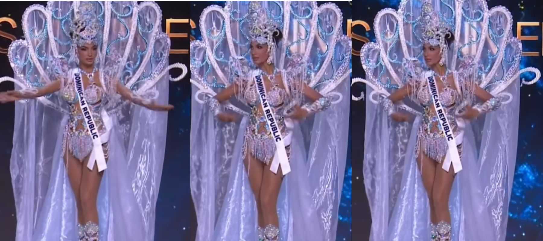 Lució un traje típico en honor a las aguas cristalinas de las playas del país, creado por el paraguayo Blas Simón Villalba y está inspirado en una “joya dominicana costosa”.