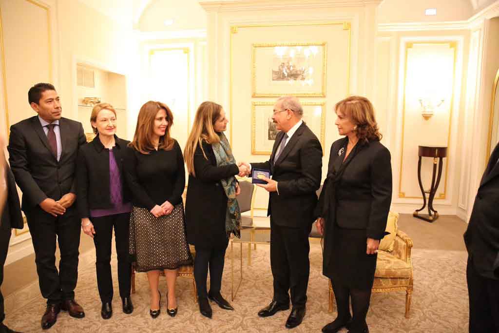 SANTO DOMINGO, República Dominicana.– El presidente de la República, Danilo Medina está reunido con la presidenta del Consejo de la Organización Internacional Ítalo-latinoamericana (IILA), Ana María de León, también embajadora de Panamá en Italia, y a Donato Di Santo, Secretario General.