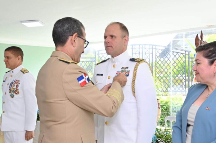 En acto celebrado recientemente, el ministro de Defensa, teniente general Carlos Luciano Díaz Morfa, ERD, acompañado por Oficiales del Estado Mayor General y del Estado Mayor Conjunto de las Fuerzas Armadas, encabezó la entrega de condecoraciones a destacados oficiales estadounidenses. La ceremonia contó con la presencia de las esposas e hijos de los condecorados, quienes fueron testigos de este significativo reconocimiento.