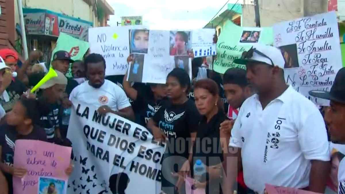 SANTO DOMINICANA., República Dominicana.- Comunitarios del sector de Sabana Perdida se movilizaron esta tarde exigiendo el cese de la violencia contra la mujer, cuyas estadísticas de feminicidios continúa en aumento, según ellos por la falta de políticas públicas más efectiva.
