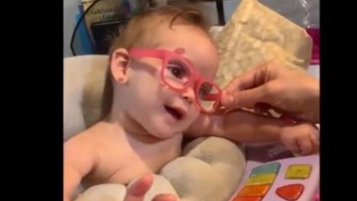 Amelia, el bebé que sufre de espina bífida y ve a su familia por primera vez al ponerse gafas pic.twitter.com/AoeVujfH0A